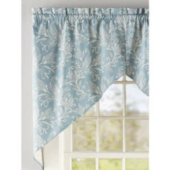 Budget 🔥 Vermont Country Store Jacobean Floral Rod Pocket Scalloped Valance Blue 👍