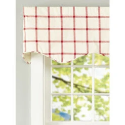 Promo โ๏ธ Vermont Country Store Windowpane Plaid Rod Pocket Scalloped Valance Natural ๐ฏ