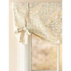 With its regal medallions and intricate geometrics, this classic print is our tribute to ancient mosaics. With a full and flowing drape, this tie-up valance is accented with two self-fabric bands that are tied like bows and give the valance a soft scalloped look. Valance is sold individually.