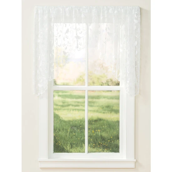 In the same garden motif as our Birdsong Lace Rod Pocket Panel and Tier, this swag brings birds, berries, butterflies, and florals to beautify any window in your home. It adds the perfect finishing touch when paired with a panel or tier and is a lovely accent when used on its own. Swag is sold in pairs.