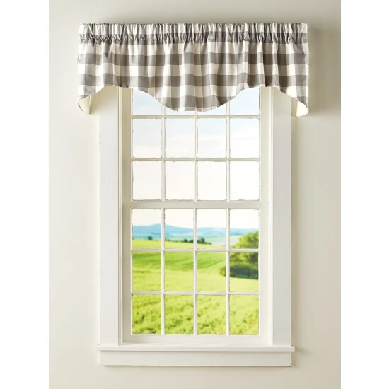 - Coordinating Buffalo Check Rod Pocket Curtains (#79210), Rod Pocket Tiers (#79018), Tab Top Curtains (#87619), Tailored Valance (#79020), and Scalloped Valance (#79021), sold separately