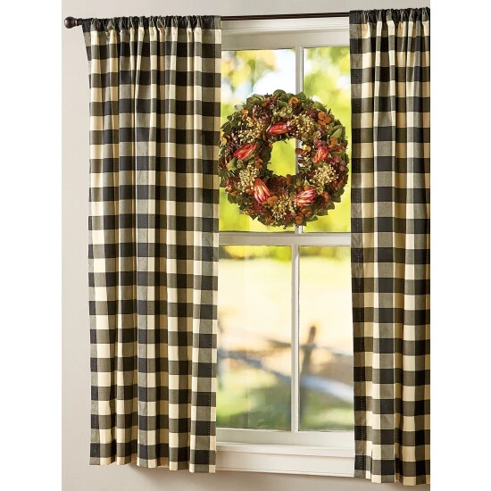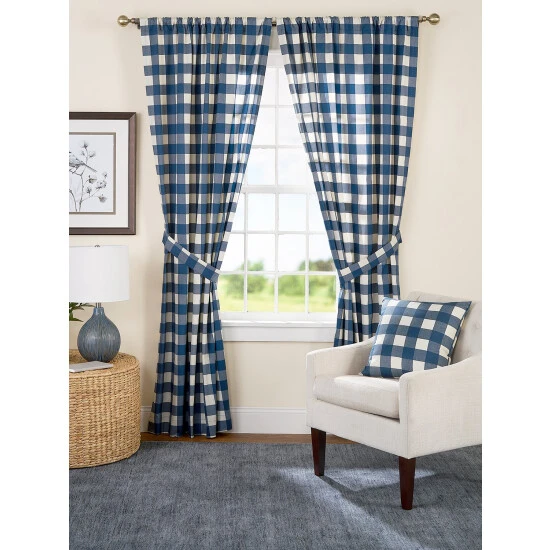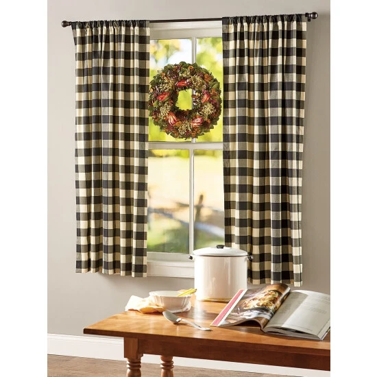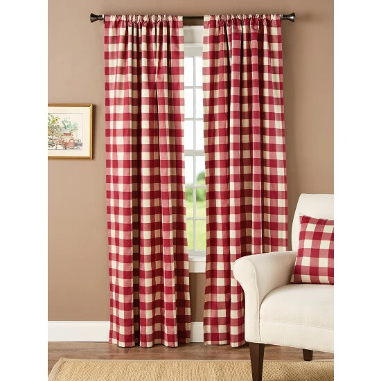 - Coordinating Buffalo Check Rod Pocket Tiers (#79018), Tab Top Curtains (#87619), M-Shaped Valance (#79019), Tailored Valance (#79020), and Scalloped Valance (#79021), sold separately