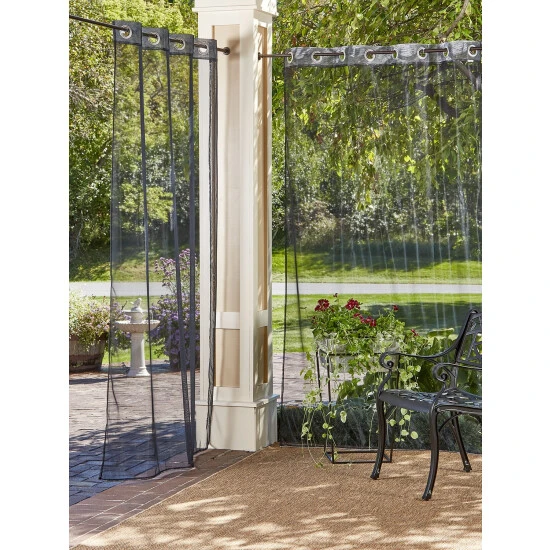 The panel is infused with Permethrin, a natural extract derived from the chrysanthemum flower that’s FDA approved and effective at repelling bugs and mosquitos. It’s also treated to repel water, mold, and mildew, and to be resistant to damage from UV rays. The sheer panel also allows sunlight and breezes to filter through for a cool, bright, bug-free space. Finished with a weighted bottom hem to keep the panel in place. Panel is sold individually.