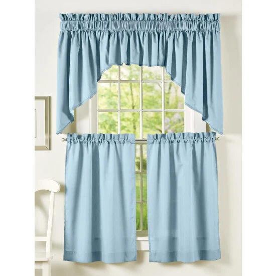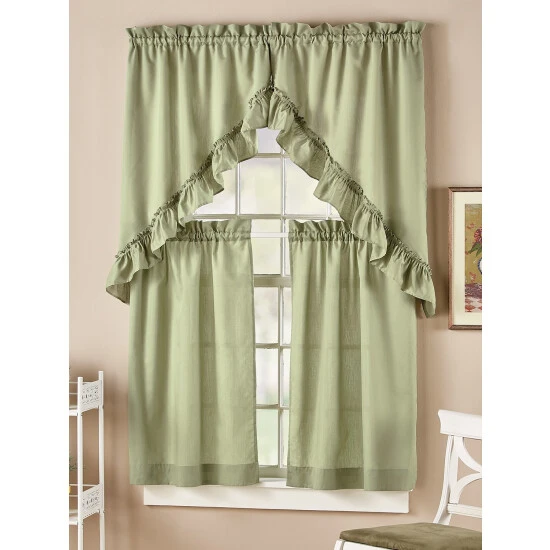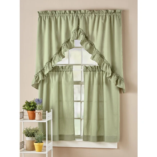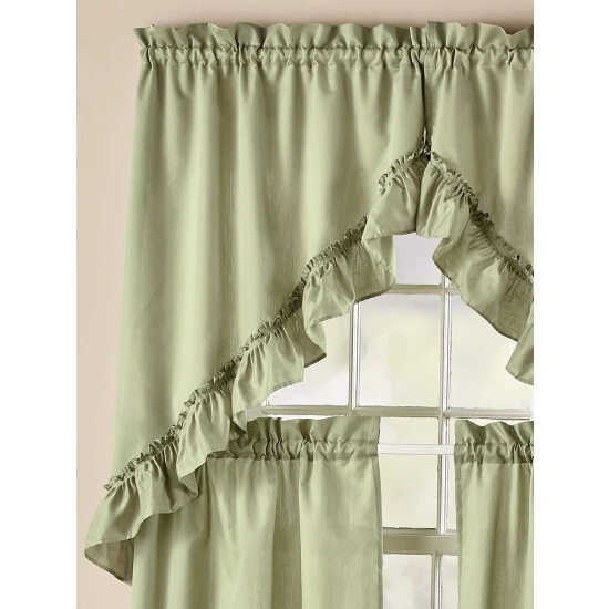 If you love the simple lines of our Jane’s Plain Curtains but would like to add some color to your decor then you’re going to love our Carolyn’s Colorful Collection. They feature the same simple style and quality craftsmanship in a range of colors designedto complement your decor. All styles are made of an easy-care cotton and polyester blend,which means you can just toss them in the washer to keep them looking their best. Swags are finished with a 5″ ruffle and sold in pairs.