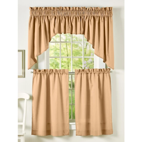 - Coordinating Colorful Carolyn’s Rod Pocket Tailored Tiers (#81518), Ruffled Valance (#81520), Balloon Valance (#81521), and 3-Piece Lined Swag Set (#81522), sold separately