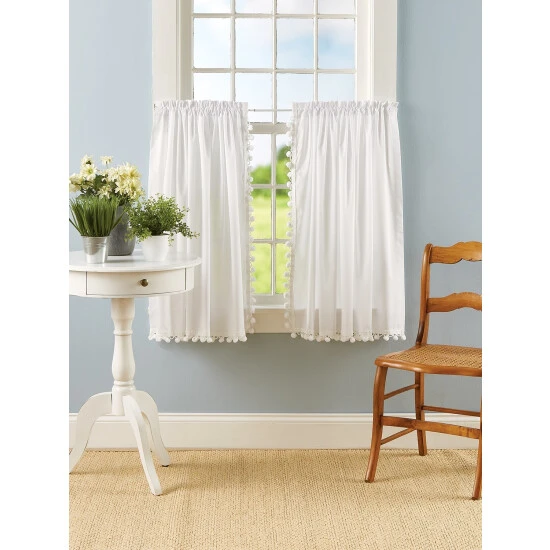 Always in style and always a favorite, these tiers bring cheery vintage style to any room. They’re made of premium woven polyester and cotton, which washes like a dream and hangs beautifully. But the sweet ball-fringe “pompom” trim will steal your heart. This simple addition will add endless charm to any room you hang them in. Tiers are sold in pairs.