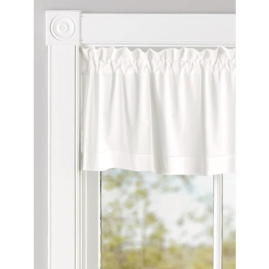 Simplicity at its most beautiful! This soft,elegant insert valance is finished with open-needlework hemstitching along the hem. Mid-weight cotton ensures a beautiful drape and makes this valance easy to care for, too. And because it’s an insert valance, it’smade to fit between curtains, tiers or swags or can be used on its own for a simple classic look. Valance is sold individually.