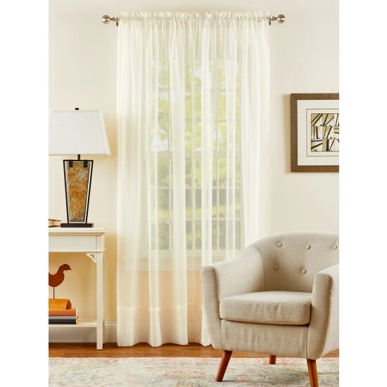 This lightweight voile panel lends a soft, elegant look to your windows while softly filtering the sunlight to keep your living space light but not too bright. The benefit? You gain privacy without totally blocking sunlight. This good-looking sheer panel features a beautiful, full drape and a dramatic 10″ hem with pleated detailing. The curtain panel is sold individually.