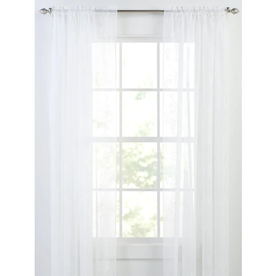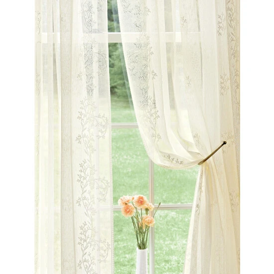 Our Divine Sheer Rod Pocket Tiers and Panels feature botanical accents embroidered on a soft sheer fabric that lets the light in while maintaining a level of privacy. Beautifully finished embroidered edges in a simple rod-pocket style. Tiers and panels are sold individually.