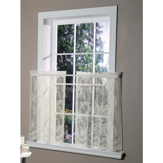 The delicate floral embroidery is like having dozens of lacy bouquets suspended in mid-airβwhat a beautiful way to frame the windows of any room! These romantic tiers are woven with durable polyester, which means they are easy to care for and will last for years. They have a soft, flouncy drape that falls gracefully to a scalloped hem. Tiers are sold in pairs.