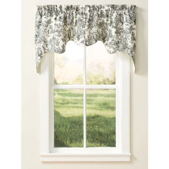 This classic French toile pattern lends a traditional look to your decor—a timeless look that you will enjoy for many years to come. Use this Empress swag on its own or with the coordinating panel. Lined swag is sold in pairs.