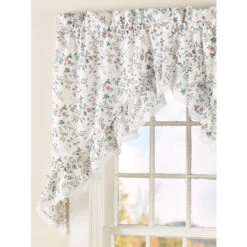 Between the floral print and the matching 6″ ruffle trimmed with eyelet lace, this charming swag provides plenty of color and a timeless down-home feel to your kitchen, bedroom, or bathroom. The polyester/cotton blend gives it a crisp, clean look and feel. It’s great for layering or to use on its own. Swag is sold in pairs.