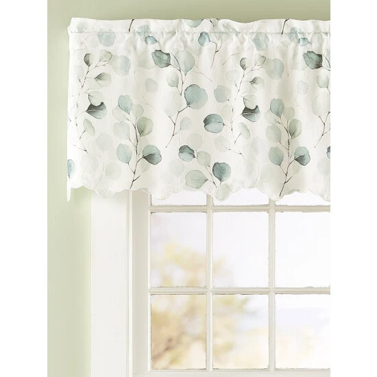 This semi-sheer valance features an all-over botanical design in a soothing color palette that brings soft serenity to any room in your home. The fabric is crushed taffeta with a delicate texture that enhances the overall light and airy look and feel. Valance is sold individually.