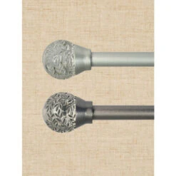 Why just hang your curtains when you can enhance them with this decorative curtain rod? It features ornate globe finials with hand-painted metallic leavesβa pretty botanical design thatgoes great in any room. The telescoping curtain rod includes three support brackets that adjust from 4″ to 6″.