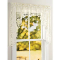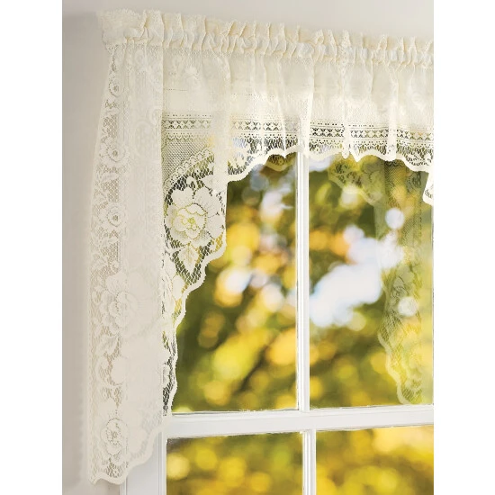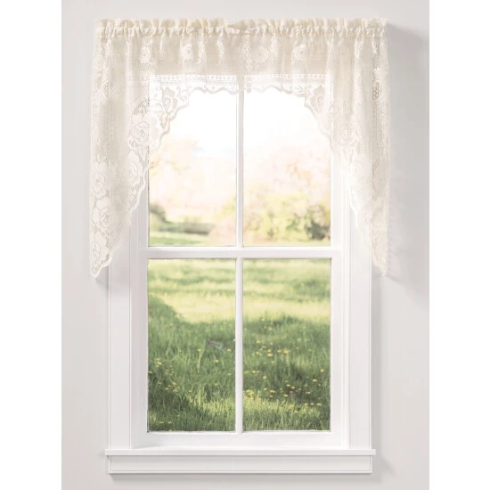 Give your home a soft, classic look with our Garden Rose Lace Swag. The delicate lace pattern offers a light filtering effect while the lace itself dresses up your windows in a pretty floral pattern. Swags are sold in pairs.