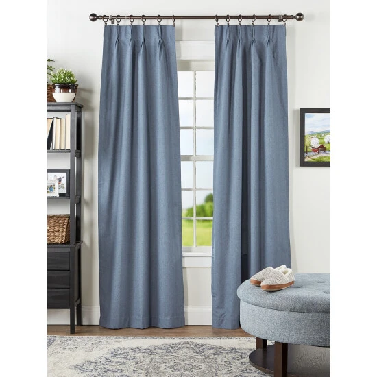 - When ordering Pinch Pleat Curtains measure from the top of the curtain rod down to where you want the curtains to fall; the length includes the pinch pleats. Select curtain pairs with a total width that’s approximately the same width of the window if you want the curtains to cover your window when closed. Pinch pleat curtains are made with a 2:1 fullness.