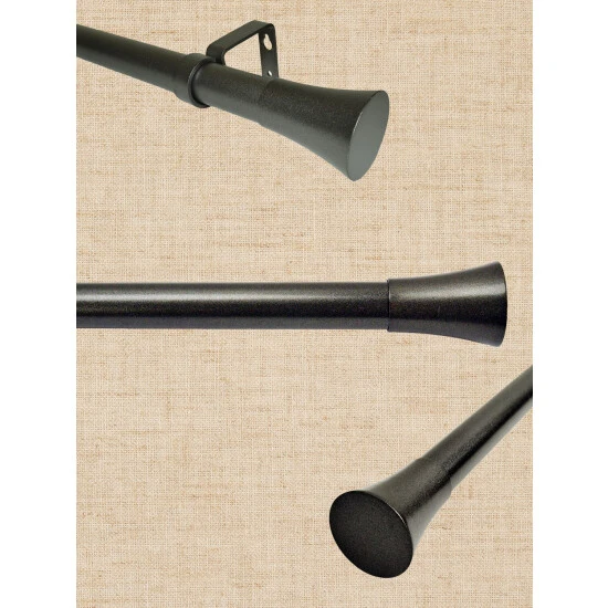 This decorative curtain rod is made of durable stainless steel and has been tested to ensure its weather resistance. It has a one-inch diameter and is adjustable to fit a variety of curtain sizes. Finished with flared finials for a decorative touch. Curtain rod is sold individually.