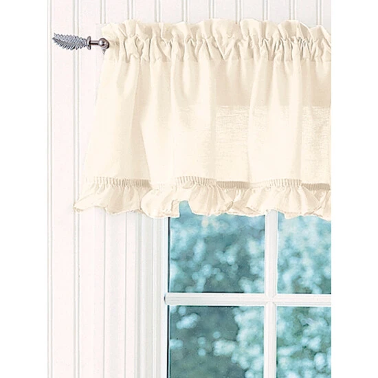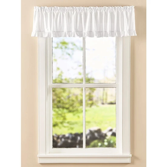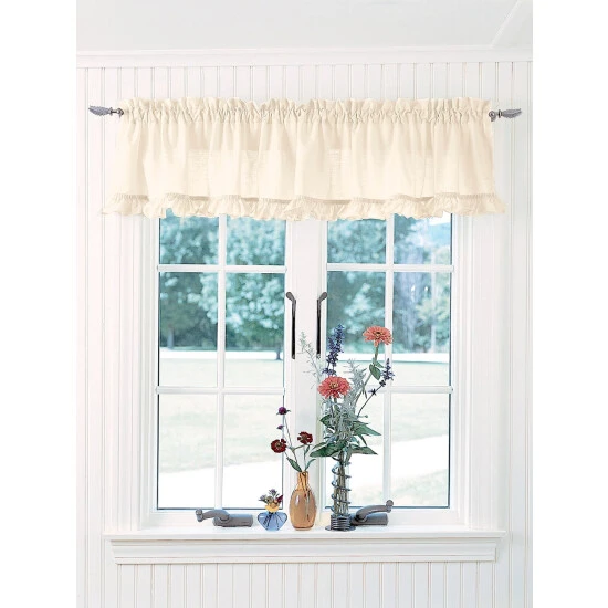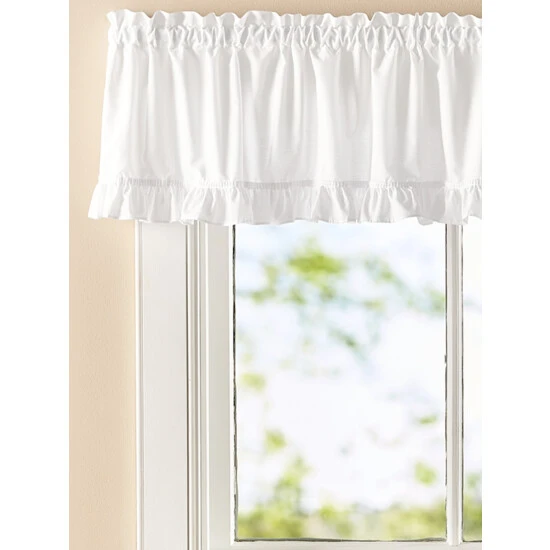This is the type of valance you’d see in a quaint inn by the seashore or a bed and breakfast tucked in the Green Mountains of Vermont. Its timeless style and simple design are the perfect accents with all types of bedding, including handmade quilts, matelasse bedspreads, and hobnail coverlets. Each valance is a cotton blend with a graceful drape and two-inch-wide ruffle trim. Use it on its own or pair it with the coordinating curtains. Valance is sold individually.
