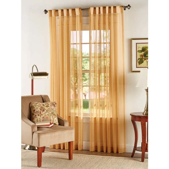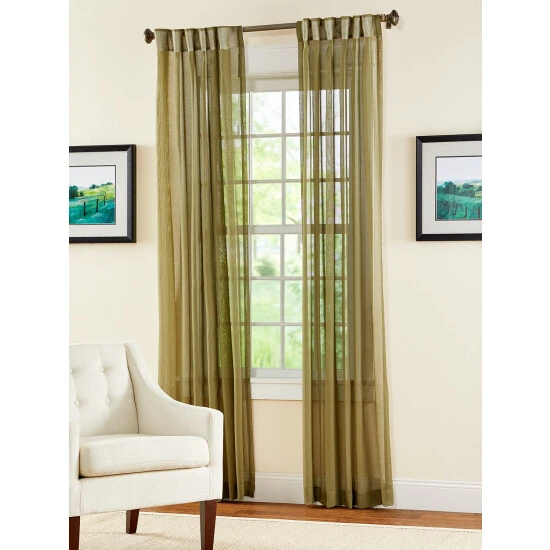 These elegant sheers are designed with back tabs that create soft pleats across the top of each panel when the curtains are open. The light-filtering fabric offers a level of privacy—plus, it hasa soft drape and generous width for a luxuriously full look. Curtains are sold in pairs and includes a pull wand for easy opening and closing.