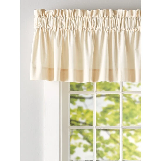 What better way to bring natural light into your home than through this all-natural semi-sheer valance. Itβs woven from unbleached and undyed cotton muslin so the light that filters through it is pure and unaltered in any way. Plus, the valance has a notable slub texture, which gives it a rich linen look. Valance is sold individually.