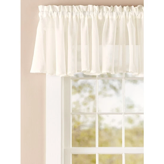 This semi-sheer valance features a soft “slubbed” fabric that’s just the right weight to filter the light while still offering privacy.It’s great for layering or to use on its own. Valance is sold individually.