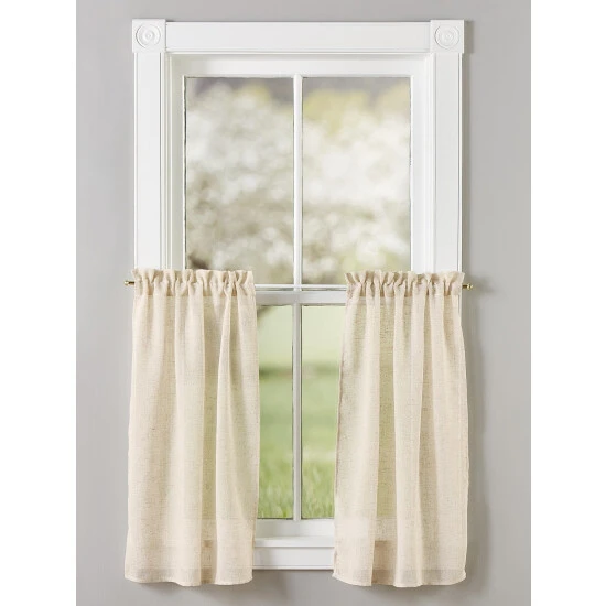 These lightweight tiers are sheer enough to let light filter in while offering a level of privacy, as well. The luxurious, yet, casual fabric blends the classic textured look of linen with the durability of polyester. Finished with all-around hems and pre-washed for a soft drape. Tiers are sold in pairs.