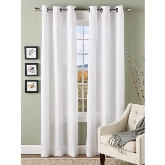Highlighted by vertical stripes, these semi-sheer curtains add both texture and beauty to your windows. They offer a level of privacy while allowing light to filter through. Use them on their own or pair them with solid or patterned panels to create your own unique window treatments. Perfect for any room in the house. Curtains are sold in pairs.