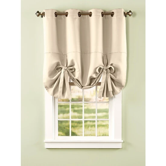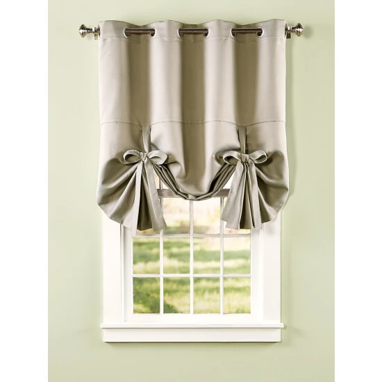 This heavy-duty valance is designed to bring a soft beauty to your windows as well as provide a barrier to block out the cold in winter and the heat in the summer. The thermal fabric is made with a special triple-weave construction technique that weaves black threads with colored yarns to block out light and insulate against heat and cold. The valance is professionally tailored with all-around hems and two adjustable ties.Valance is sold individually.