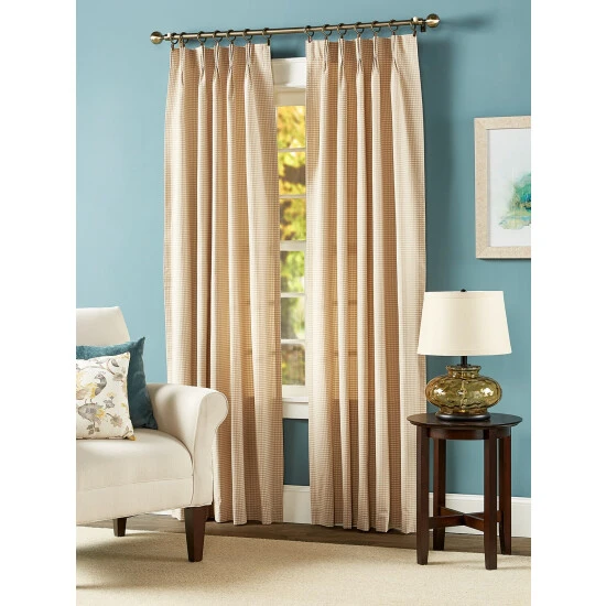 This heavyweight panel is composed of a special triple-weave fabric that combines black threads with colored yarns to block out light and insulate against the heat and cold. The panel is designed with a rod pocket and back tabs, which offers you two ways to install it—the rod pocket provides a classic gathered look while the back tabs create front-facing folds with clean lines. Finished with a 5″ bottom hem. Panel is sold individually.