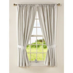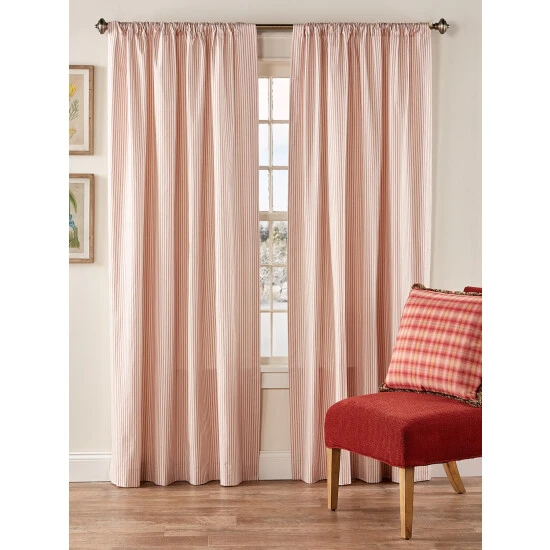 Ticking stripes are fresh and crisp and give any room a timeless look that won’t go out of style. These simple curtains are a part of our Ticking Stripe Curtain Collection and can add finishing look to a window when used on their own or create a layered window treatment when paired with one of the coordinating valances. Curtains are sold in pairs and includetwo tiebacks.