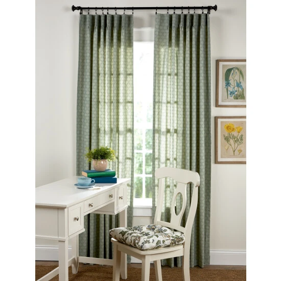 - Coordinating Tonal Check 48″ Pinch Pleat Curtains (#83190), 96″ Pinch Pleat Curtains (#83192), 144″ Pinch Pleat Curtains (#83193), 96″ Pinch Pleat Patio Panel (#83194), Tailored Valance (#83195), and Rod Pocket Sheer Panel(#83283), sold separately