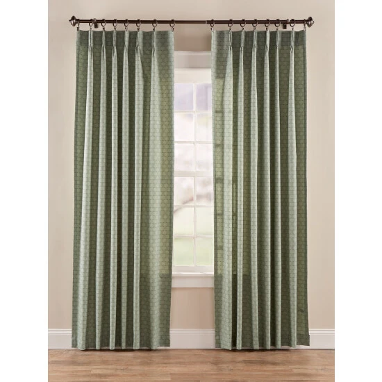 - When ordering Pinch Pleat Curtains measure from the top of the curtain rod down to where you want the curtains to fall; the length includes the pinch pleats. Select curtain pairs with a total width that’s approximately the same width of the window if you want the curtains to cover your window when closed. Pinch pleat curtains are made with a 2:1 fullness.
